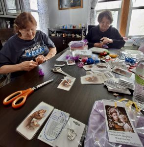 (L) Recording Secretary Dola Mehsling and Chair Monica Sciortino making gifts for OCIA 2026.